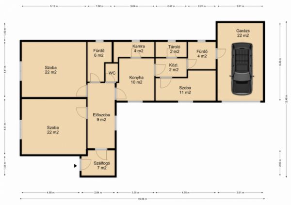 - garázs: 22 m2